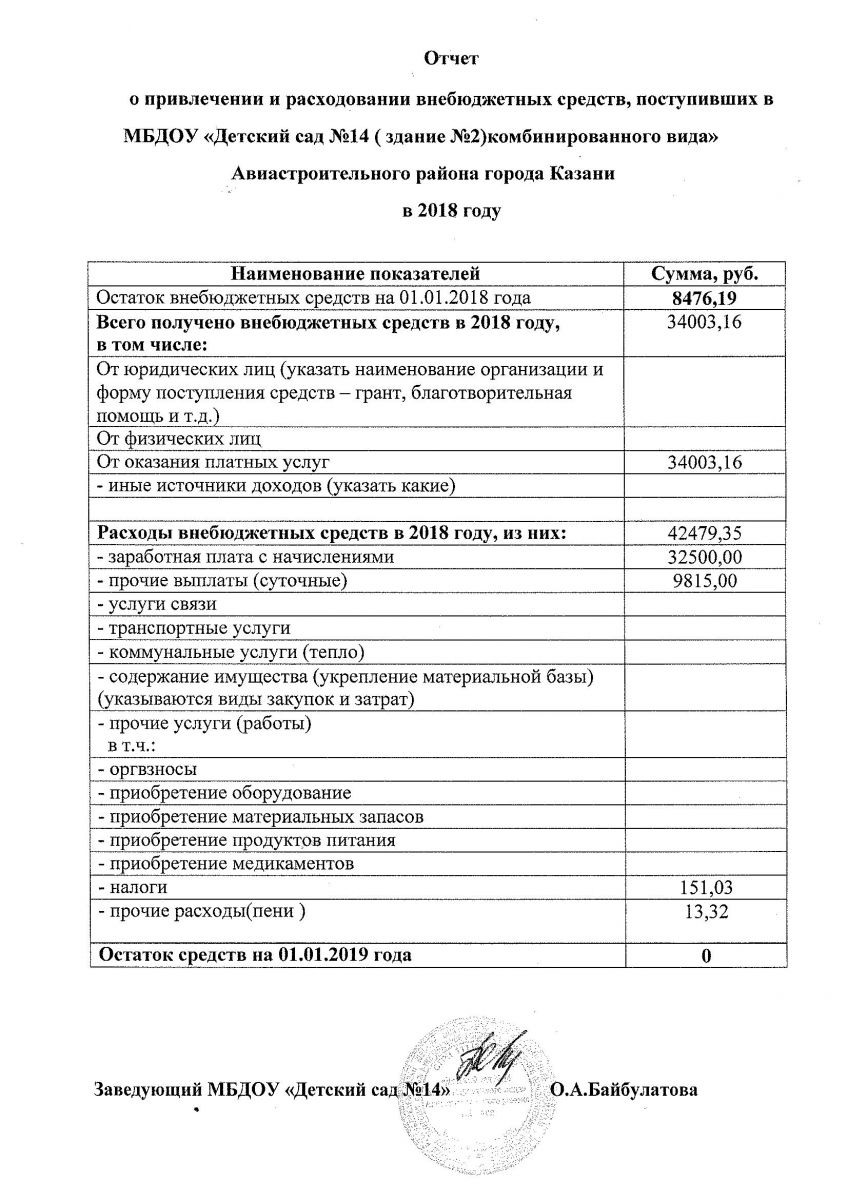 Отчет о привлечении и расходовании внебюджетных средств в 2018 году