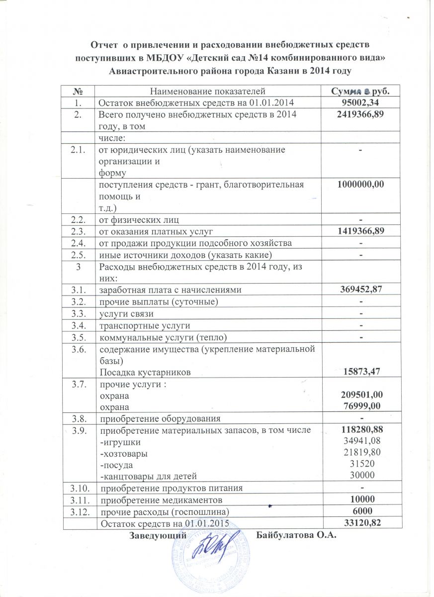 Отчет о привлечении и расходовании внебюджетных средств в 2014 году