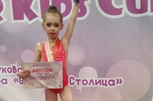 Наша воспитанница старшей группы № 5 Иванова Арина приняла участие в открытом клубном турнире по художественной гимнастике "GymStar Kids Cup, который состоялся в городе Красногорске и заняла 2 место среди гимнасток 2012 года рождения. Поздравляем с победой !!!