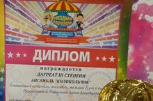 Наш ансамбль "Колокольчик" стал лауреатом 3 степени и получил Диплом на Всероссийском конкурсе детского и юношеского творчества. Браво!!! 30.10.2017