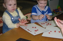 Учим детей наклеивать готовые формы в определенных частях листа. Дети 1 ясельной группы с воспитателем Сачковой Валентиной Петровной.