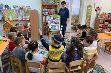 Инспектор побеседовал с детьми о правилах поведения во дворе, на улицах города, на пешеходном переходе. Анна Алексеевна рассказала о необходимости использования фликеров на одежде, а также об использовании детских удерживающих кресел. Дети активно отвечали на вопросы и сами рассказывали о правилах дорожного движения, чем очень порадовали инспектора. -