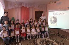 В нашем детском саду проходит неделя, посвященная поэту М. Джалилю: «Имя твоё словно песня осталась...». Цель мероприятия – познакомить детей с жизнью поэта-героя и его произведениями, написанными для детей: «Красная ромашка», «Родник», «Колыбельная дочери», «Мой пёс», «Часы» и др.