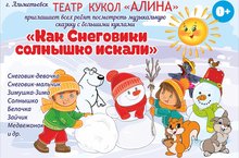 16 декабря в наш детский сад приезжает театр кукол "Алина" с музыкальной сказкой "Как снеговики солнышко искали".