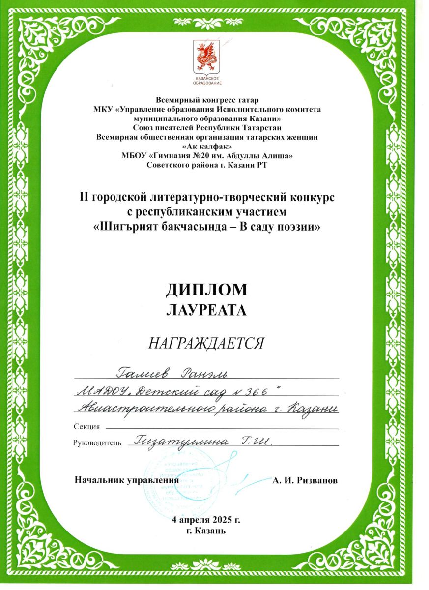 МАДОУ "Детский сад № 366 комбинированного вида с татарским языком воспитания и обучения" Авиастроительного района г.Казани