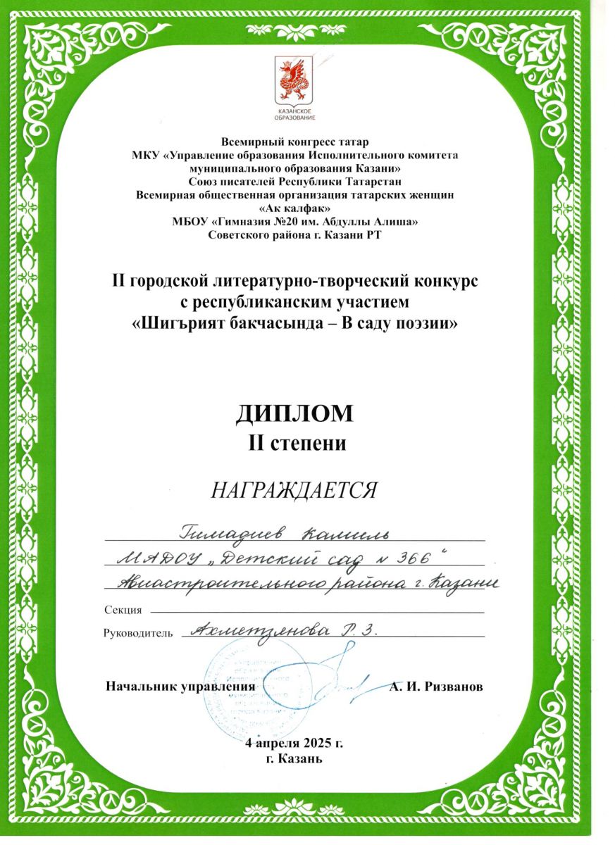 II городской литературно- творческий конкурс с республиканским участием "Шигърият бакчасында- В саду поэзии"
