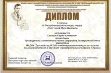 Поздравляем нашего воспитанника Салахова Карима с 1 местом в IV Республиканском конкурсе чтецов "Поэт- герой Муса Джалиль".Пусть всегда горит энтузиазм в глазах и раскрываются возможности.Вперед, к новым победам!