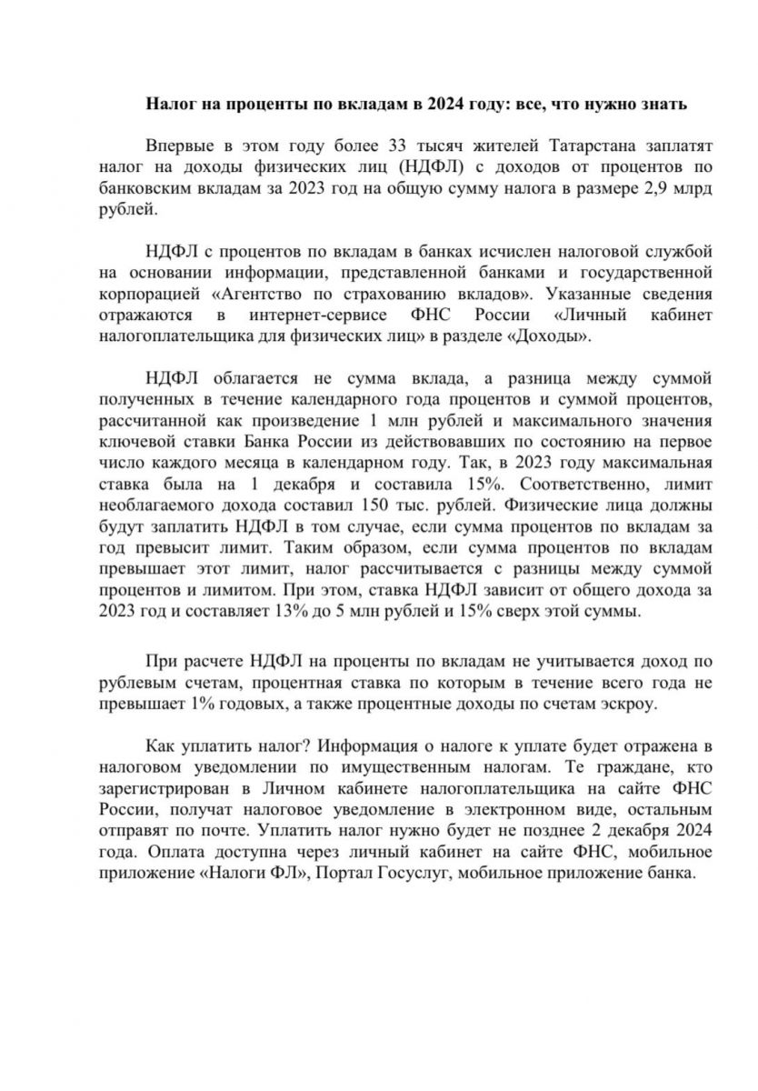 Налог на проценты по вкладам в 2024 году