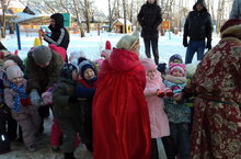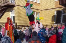 Славный русский обычай-праздновать Масленицу! Прощание с зимой и встреча весны, несущей оживление в природе и солнечное тепло, пришло сегодня в нашем детском саду. В гости к ребятам пришли Скоморохи, Масленица, сказочный медведь, танцы, песни, хороводы не давали скучать никому.