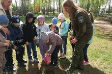 Сегодня к нам в детский сад пришли специалисты Рос.природнадзора.Они провели беседу с детьми как надо беречь нашу планету, что нужно для этого делать, и как , порой не задумываясь о своих поступках и поведении, человек загрязняет окружающую среду и вредит экологии.Самое главное ребята пришли к выводу о том, что планета Земля - наш родной дом, и мы должны заботиться о ней! После интересной и познавательной беседы с детьми, мы все вместе отправились на улицу воплощать в реальность задуманное т.е. сажать хвойные деревья.