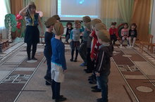 Наши ребятки приняли участие в акции "Голубь Мира" - создавая фигуру голубя как символ сегодняшней мирной жизни.