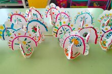 Россия славится своими художественными промыслами, имеющими многовековую традицию. Один из старейших – дымковская игрушка. Она впервые возникла 400 лет назад и до сих пор не потеряла своей актуальности. На протяжении этого времени менялся облик дымковской игрушки, но особенность ее изготовления, делающая ее уникальной, оставалась прежней. Познакомившись с картой Древней Руси, воспитанники группы "Бабочки" отправились в село Дымково, где много узнали о дымковском ремесле. Тематическая неделя "Дымковская игрушка", знакомство с дымковской игрушкой, приобщение к культуре и традициям русского народа. Дымково уенчыгы җитештерү рус халык сәнгатенең, гасырлар кичеп безгә кадәр килеп җиткән, халык һөнәрчелегенең иң танылган һәм иң күренекле төрләреннән берсе дип саналучы уникаль, кабатланмас бер юнәлеше булып тора. Аның даны күптән инде үзебезнең илдә генә түгел, чит җөмһүриятләрдә дә киң таралды. Русьтагы иң борынгы һөнәрчелек төре Киров шәһәрендә барлыкка килгән.