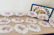 -знакомство с новым материалом «вата», упражнять в умении детей выполнять аппликацию, разрывать кусочки ваты и аккуратно приклеивать их, изображая облака.