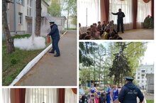 Рахматуллин И.Р. провел инструктажи с воспитанниками детского сада, рассказал от чего происходит большинство загораний и пожаров, как можно защитить себя от огня при помощи первичных средств пожаротушения (огнетушителя, воды, песка, земли). В завершении беседы был показан фильм о работе пожарных-спасателей, после чего была проведена тренировочная эвакуация с воспитанниками и сотрудниками ДОУ.