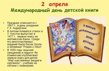 Книги передают накопленный поколениями опыт. Они воплощают знания, эмоции, мысли авторов. Существует жанр, который ориентирован на развитие детей. Детские книги помогают ребенку усвоить базовые знания, знакомят с окружающим миром, правилами поведения, прививают интерес к чтению. Для приобщения маленьких читателей к литературе, обращения внимания на проблемы отрасли, популяризации трудов авторов создан международный праздник.Цель этих мероприятий: формирование интереса у детей к детской книге через творческую и познавательную деятельность, воспитание любви и бережного отношения к книгам.