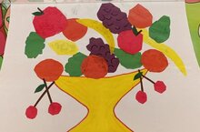 Коллективная работа в старшей группе "Фрукты и ягоды в вазе"