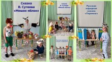 Эмоциональное игровое мероприятие – «Путешествие в сказку». Драматизация сказки «Мешок яблок», целью которого было формировать у детей негативное отношение к такому качеству, как жадность и воспитывать желание и готовность делиться с другими детьми. Сначала, прослушав сказку, воспитанники анализировали поступки персонажей, предлагали выход из создавшейся ситуации. Затем, распределив роли, приступили к показу сказки. Во время выступлений каждый ребенок старался показать свои артистические способности. Сказка получилась веселой, доброй. На примере героев этой сказки, ребята поняли, что нужно больше доверять друг другу, быть добрыми и щедрыми. Ребята решали стать настоящими актерами и выступить перед зрителями (самыми юными) с инсценировкой русской народной сказки «Теремок». Дети вместе с воспитателем подготовили декорации и костюмы для создания атмосферы сказки.Проведение театральной инсценировки сказки помогает детям развить навыки актерского мастерства, выразительности речи, а также сотрудничества и взаимодействия в группе. Ребята смогли проявить свою творческую натуру и показать свои способности в театральном искусстве. Такая активность в детском саду создаст атмосферу веселья и радости, а также позволяет детям погрузиться в мир сказки и фантазии. -