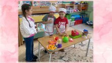 Не секрет, что рано или поздно все дошкольники начинают примерять на себя профессии взрослых и делают они это с помощью сюжетно-ролевых игр. В сюжетно-ролевых играх отражаются представления детей об окружающем мире, взаимоотношениях и профессиональных обязанностях людей. Сюжетно-ролевая игра не только развлекает ребенка, но и является элементом образовательного процесса в детском саду. Так, с целью расширения представления детей о труде работников кафе, для формирования культурного поведения в общественных местах, в старшей группе «Родничок» дети организовали игру "Кафе". Дети сами выбирали себе роли: поваров, официанта, посетителей. Ребята закрепляли знания об овощах, фруктах, продуктах питания, посуде, показывали своё умение пользоваться столовыми приборами.