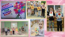 Поздравление подготовительной к школе группы «Солнечный зайчик»Для мамочек, сегодня звучат поздравления,Вы лучшие в мире, говорим, без сомнения.Вы самые нежные, Вы — сокровище наше,Нет в мире прекрасней, любимей и краше!Ребята и педагоги подготовили стенгазету, поздравительные открытки и флэшмоб поздравление для мам «Мама милая моя» -