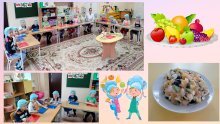 Ребята группы «Капелька» совместно с педагогом решили приготовить салат из фруктов. Для его приготовления решили взять яблоки, груши, апельсины, мандарины, бананы, киви и виноград. Вооружившись разделочной доской, пластиковым ножом, надев фартук с колпаком, юные поварята принялись за работу. Дошколята были просто в восторге, им впервые позволили самим готовить. Наш фруктово - витаминный салат готов! Дети с большим удовольствием пробовали свое собственно-приготовленное вкусное, а главное, полезное кулинарное блюдо! Такое занятие запомнится ребятам надолго.