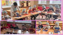 Осень - прекрасная пора! Осень богата щедрыми подарками! Огород отблагодарил чудесными дарами - овощами. Собрав урожай, педагоги и дети подготовительной к школе группы «Капелька» решили приготовить с нашими воспитанниками овощной салат - винегрет. В процессе приготовления мы закрепили знания детей об овощах, об особенностях произрастания, правилах ухода за ними. Овощи мы заранее отварили и почистили. Для каждого ребенка подготовили разделочную доску, пластиковый нож, Фартук, головной убор. Конечно же сначала были обговорены все правила безопасности. Изучили способы нарезки овощей, приёмы правильного обращения с ножом во время работы. Выяснилось, что у некоторых ребят уже есть личный опыт такой работы, они помогали дома мамам нарезать продукты. Дети с удовольствием нарезали овощи. Такой вкусный получился винегрет, приготовленный детьми, что все ели с удовольствием, даже просили добавки. -