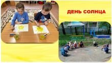 Наши ребята нарисовали солнце, солнце засияло на листе бумаги и на асфальте.
