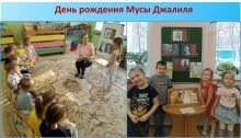 В старших и подготовительной к школе группах прошли беседы о жизни и творчестве поэта. Дети выполняли творческие работы по произведениям Мусы Джалиля. Узнали, что Муса Джалиль (1906–1944 гг.) — поэт и журналист, ставший в годы Великой Отечественной войны военным корреспондентом и ярым борцом за свободу.