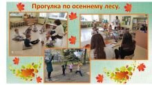 По лесу осеннему мы гуляли,Белочке и Ежику помогали!Собирала белка в домНа зиму запасы,Любовалась всё дуплом,Разложив припасы,Мы со звуками играли,Рыжей белке помогали.("Белочкины запасы" логопедическое занятие)По дорожке ежик шел,И в траве грибок нашел.А мы грибы не собирали,А из бумаги вырезали.("По дорожке ежик шел и в траве грибок нашел". Художественно-эстетическое развитие.Аппликация.)Дружно за руки возьмемся,На прогулку соберёмся.На свежем воздухе, друзья,Физкультура нам нужна.Чтобы сильными и ловкими быть,С физкультурой будем мы дружить!("Прогулка по осеннему лесу". Физическое развитие. Физическая культура на воздухе.)В средней группе "Солнечный зайчик". -