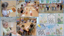 Экологическая игра "Дожди бывают разные". Любое явление — это чудо! А для детей — особенно. Потому они так часто задают много вопросов! Сегодня заинтересовали маленьких почемучек и рассказали детям про дождь, что это уникальное явление природы. Это — осадки, они образуются в облаках и падают на Землю в виде капель воды. Дождь — очень нужен. Ведь он питает землю, дает воду растениям и животным. Мы с ребятами понаблюдали за дождём: как капельки падают на деревья, травку, асфальт, поиграли в пальчиковую игру "Дождик", нарисовали тучке - капельки, немного размялись и поиграли в игру " Перепрыгни через лужу". Ребята с удовольствием провели этот день. Ребята много узнали о загадочном и прекрасном явлении природы. Для детей были проведены следующие конкурсы: «Отгадай загадку», «Дождик, дождик, поливай…», игра «Я гуляю под дождем», «Солнце и дождик». Ребята раскрашивали дождь. -