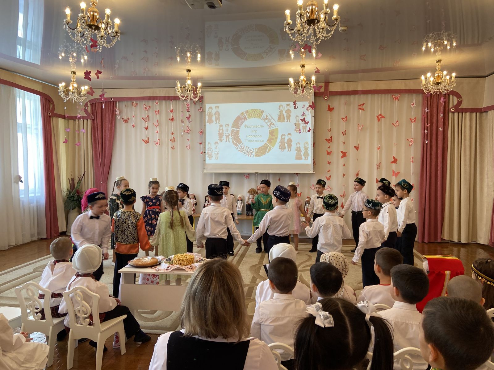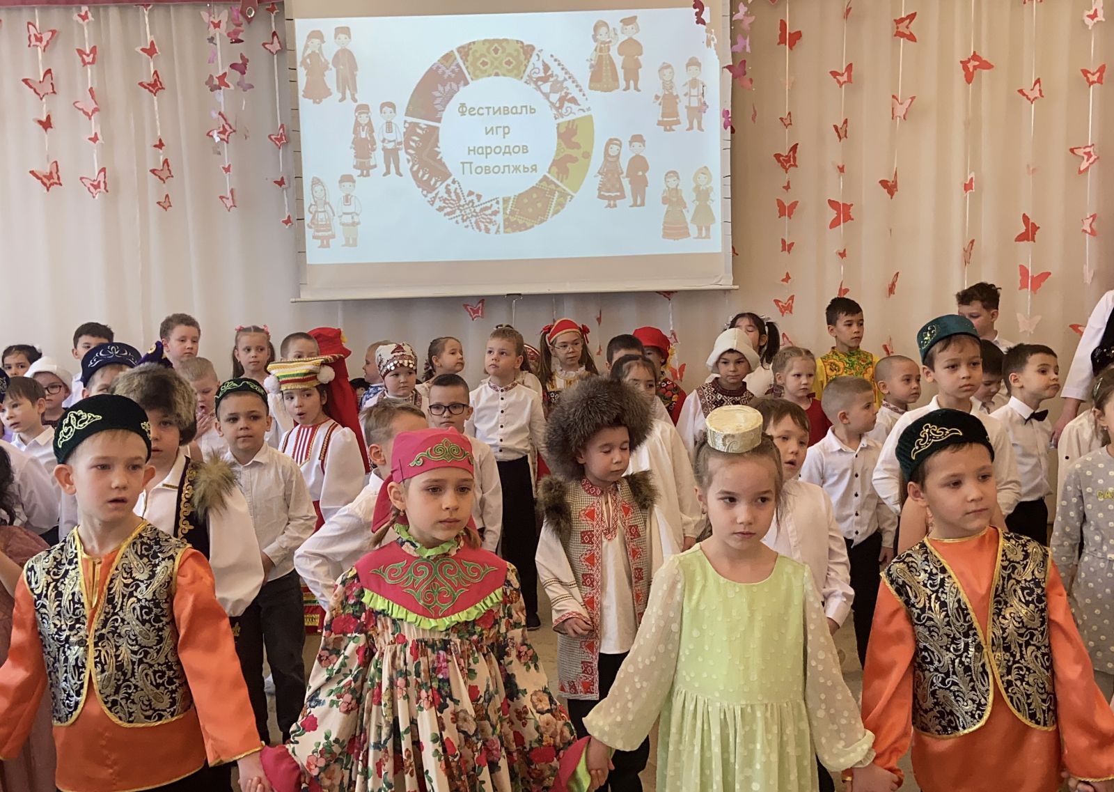 Сегодня в нашем детском саду прошел Фестиваль игр народов Поволжья. В нём приняли участие «представители» коренных народностей края – русские, татары, мордва, чуваши, башкиры, марийцы. Красочные национальные костюмы , национальные блюда, самобытные танцы, мелодичные народные песни, зажигательные игры – всё это сделало мероприятие ярким и зрелищным.