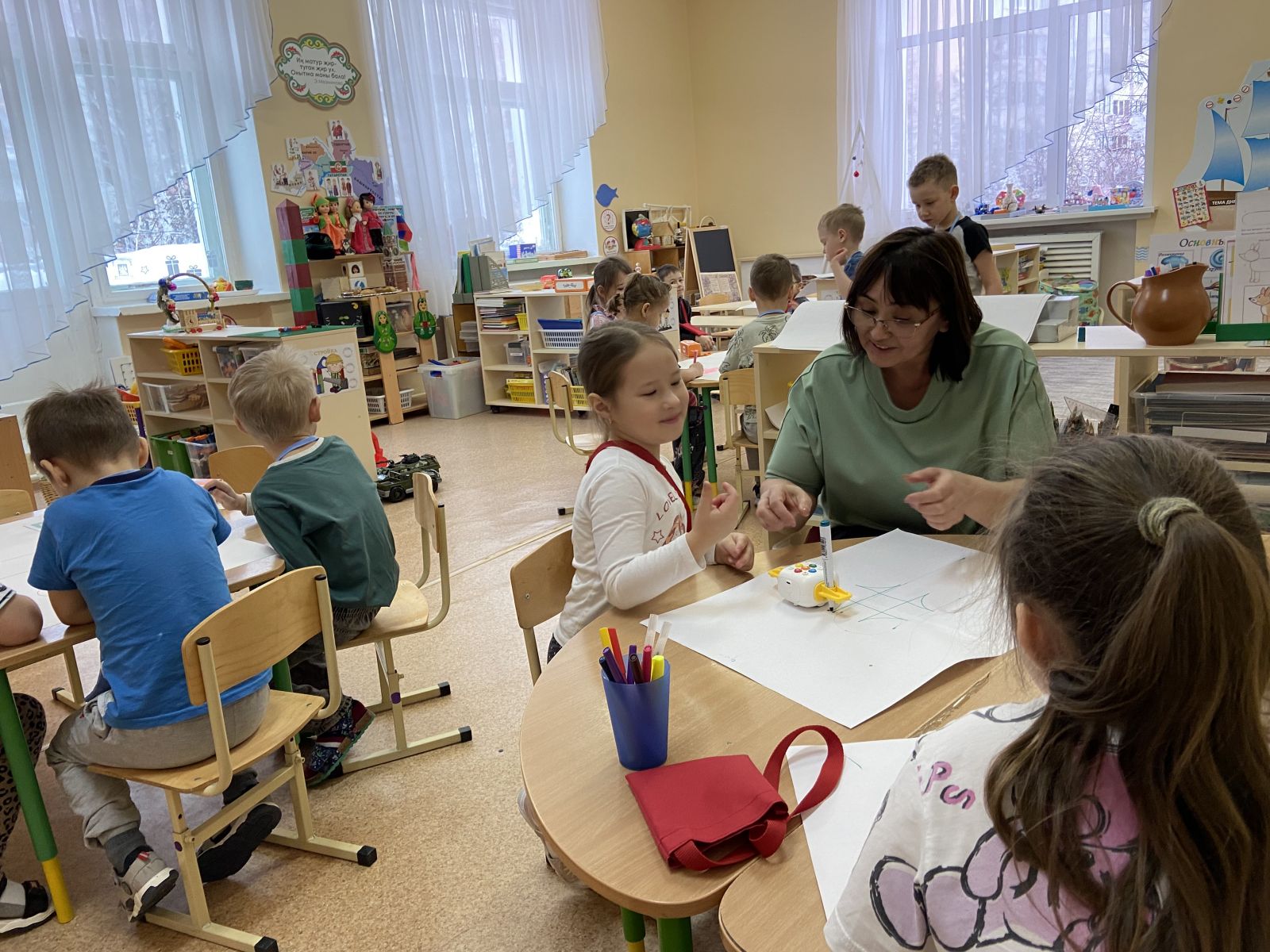 Сегодня в лицее № 95 прошел Всероссийский форум «Воспитатели России». Участниками мероприятия стали около 600 специалистов из разных регионов страны. Программа форума включала пленарное заседание, интерактивные и стратегические сессии, а также 22 мастер-класса, на которых участники обсуждили современные подходы к дошкольному образованию и цифровые инструменты в работе воспитателя. Коллеги познакомились с эффективными цифровыми решениями в образовательной деятельности педагогов Казани, а также Ярославля, Набережных Челнов, Альметьевска и других городов. Педагогами нашего детского сада был проведен мастер-класс на тему "Как программируемые роботы могут помочь в речевом развитии и повышении интереса дошкольников к изучению языков?"