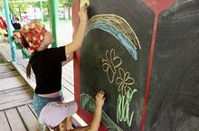 Нам представляется, что для рисования красками и карандашами, лепки, аппликации и всяких поделок нужно усадить малыша за стол. Или, по крайне мере, создать для работы соответствующую обстановку. Но ведь лето в разгаре! Можно рисовать и на улице! Творчество на свежем воздухе – это и весело, и полезно одновременно!