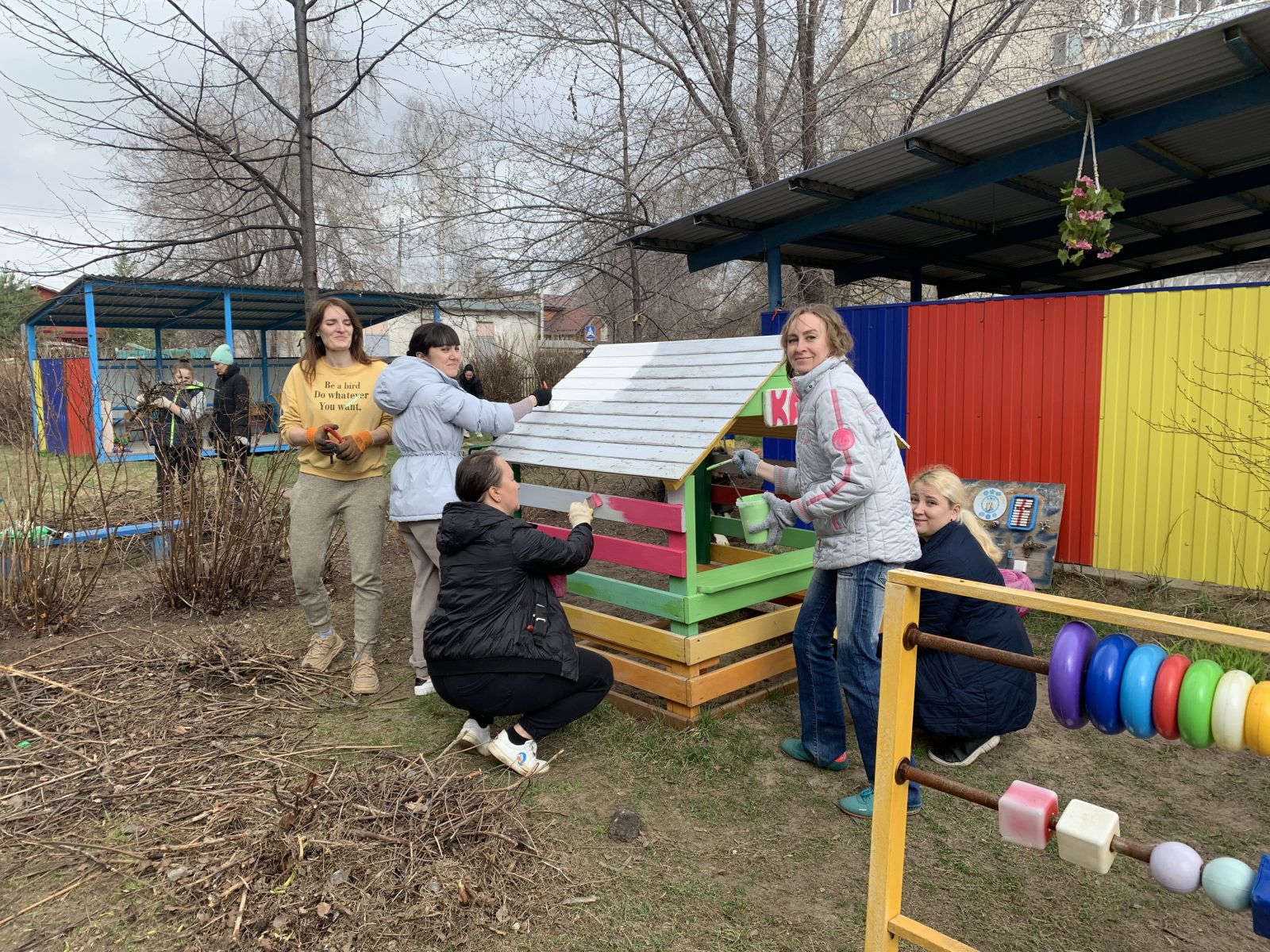 С самого утра на территории царила атмосфера дружбы и общего дела: родители убирали мусор, приводили в порядок клумбы, красили игровые элементы, ремонтировали малые архитектурные формы. Благодаря слаженной работе и энтузиазму участников территория детского сада преобразилась: стало чище, уютнее и безопаснее.