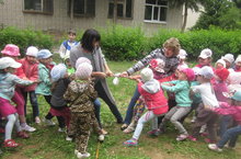 В празднике участвовали воспитанники всех групп. Дошколята принимали участие в народных играх и национальных состязаниях: бег в мешках, перетягивание каната, перенеси яйцо в ложке. Самым сложным для ребят, оказалось, попасть по горшку с закрытыми глазами, но и с этим испытанием они справились!