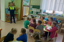 Обучение детей правилам безопасности дорожного движения по-прежнему остается одной из важнейших задач дошкольного образования.С этой целью 2 мая инспектор ДПС Шарипзянов А.И. прочитал лекцию:" Правила безопасного поведенияна дороге". Воспитанники не только освежили в памяти правила дорожного движения, но еще узнали много нового и интересного. -