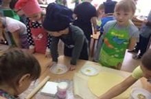 Сегодня воспитатели и родители подготовительной к школе группы №10 превратились в настоящих кулинаров.Дети самостоятельно раскатывали готовое тесто, вырезали разнообразные фигурки с помощью формочек и украшали разноцветной посыпкой.В данном мероприятии творению не было предела...Затем готовое тесто уложили на противень и отнесли на кухню выпекать.А далее совместное чаепитие с мамами.Ах,какое же оно было вкусное.