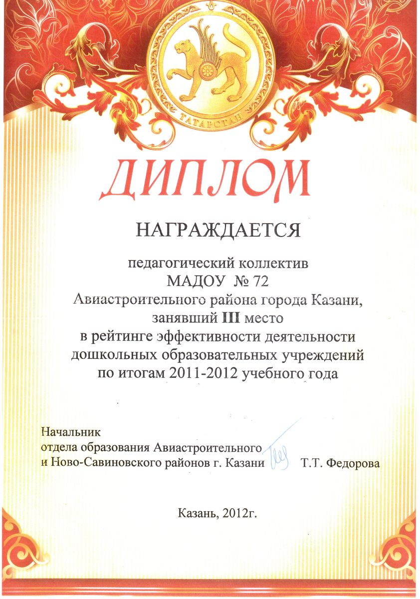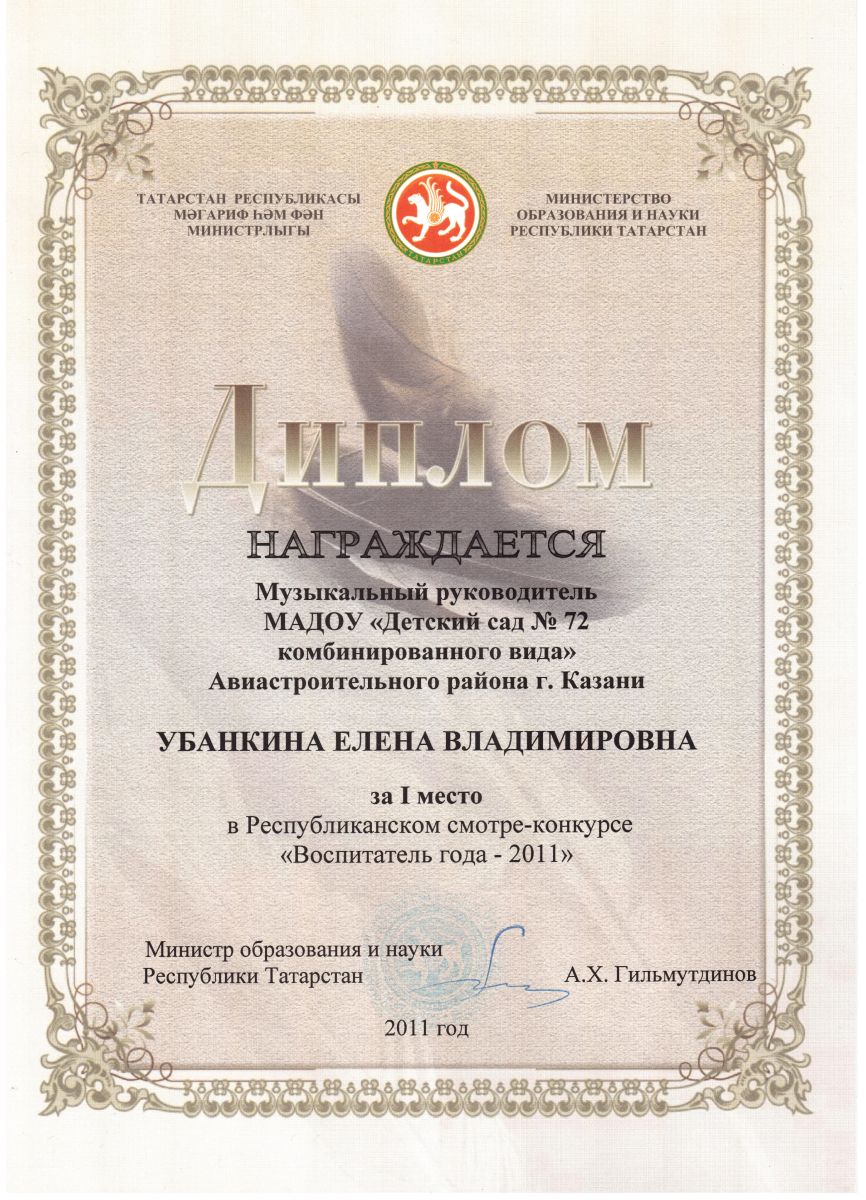 Диплом "Воспитатель года - 2011 Республики Татарстан"