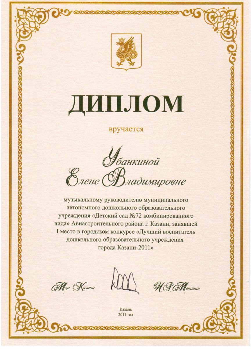 Диплом "Лучший воспитатель ДОУ города Казани - 2011"