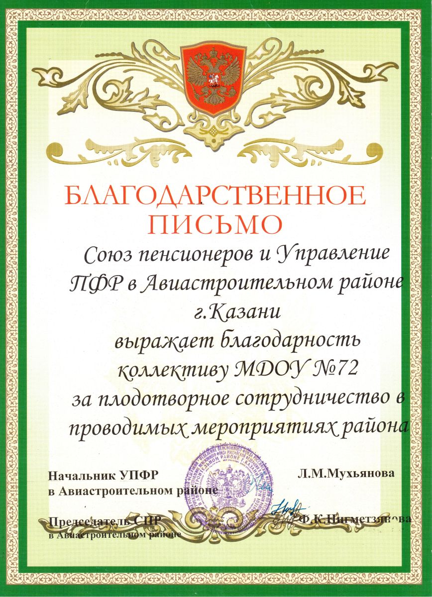 Благодарственное письмо Министерства Лесного хозяйства РТ
