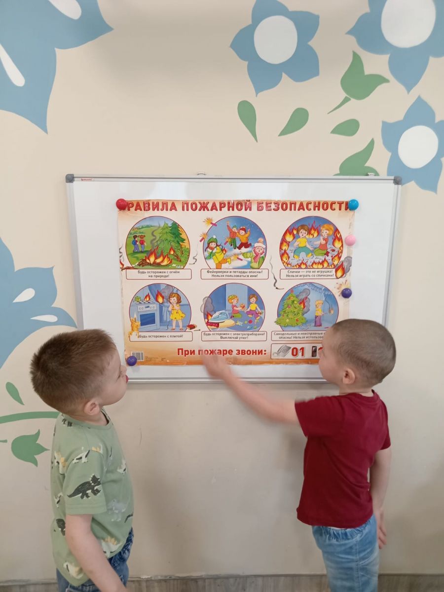 В детском саду проводятся занятия по культуре безопасности в рамках открытого урока, посвященного Году защитника Отечества и 80-й годовщине Победы в Великой Отечественной войне 1941-1945 годов, Дню пожарной охраны. Также в течение месяца проходили мероприятия по формированию основ безопасного поведения во всех группах.