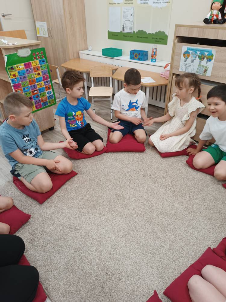 Упражнения с педагогом-психологом «День хорошего настроения», «Дружба начинается с улыбки», «Вместе — мы сила» формируют у дошколят благоприятный социально-психологический климат в группах.