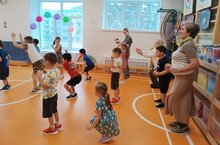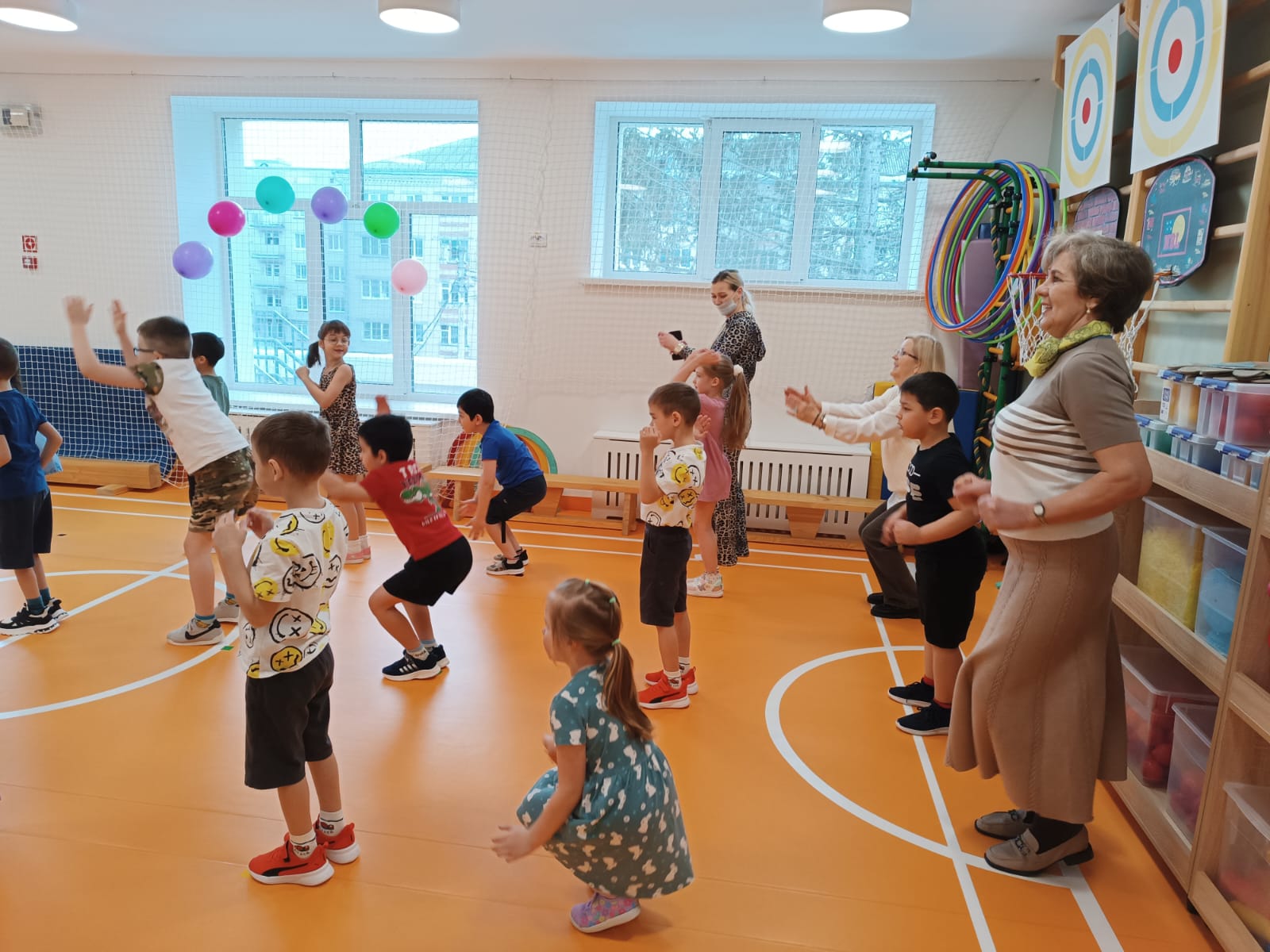 Второй день открытых дверей начался с детско-родительской зарядки в старших группах.