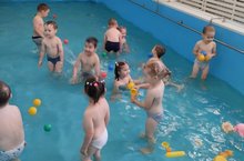 Детский сад пришёл в бассейн.Невелик он глубиной,