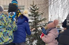 Дети подготовительной группы 8 украсили ёлку около детского сада ледяным фигурками.