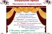 Каждый год в детском саду проводится неделя театра, посвященная Международному Дню ТЕАТРА. Вниманию детям представлены разнообразные театральные жанры. Наши воспитанники с удовольствием исполняют роли сказочных героев. Родители приняли активное участие в изготовлении костюмов и декараций. Такие встречи помогают детям самореализоваться. Успехов, вам, маленькие артисты!