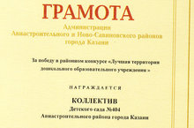 Детский сад наградили грамотой за победу в районном конкурсе участков. Выражаем огромную благодарность родителям, сотрудникам за помощь в победе!!!