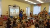Ведущий специалист ГБУ БДД по профилактике и предупреждению ДДТТ Газизова А.З. провела сегодня с детьми подготовительной группы беседу по профилактике БДД и необходимости применения СВЭ в темное время суток. А также были показы фильмы с сайта "Саклы".