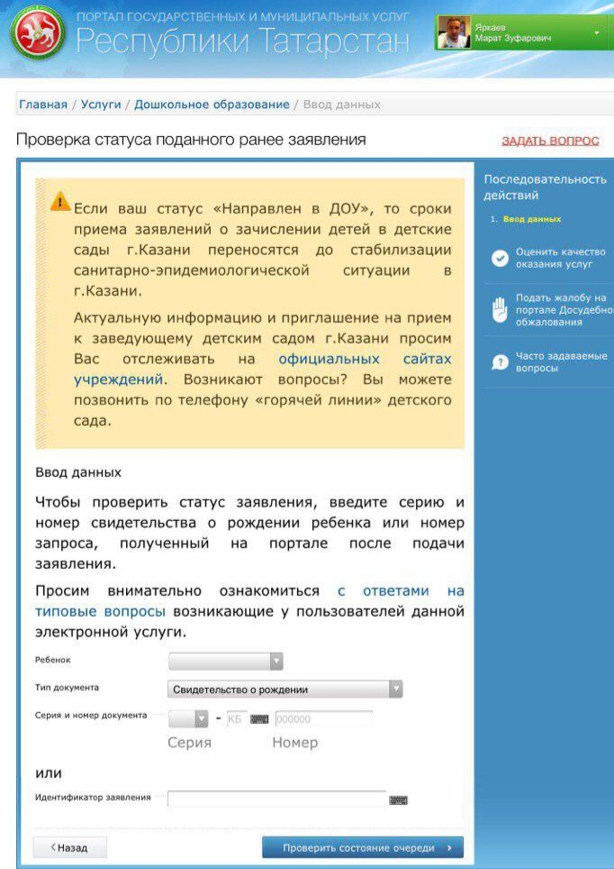 Напоминаем о необходимости отслеживания очередности ребенка на Портале государственных и муниципальных услуг РТ.