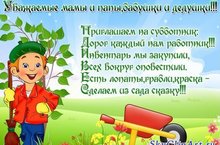 Уважаемые папы и мамы! Приглашаем Вас на субботник!!! Весь коллектив будет работать 23.04.2016 года на территории детского сада, проведем день вместе