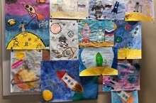 Наши ученики начальной школы нарисовали рисунки, посвященные Космосу